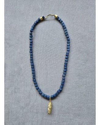 Collar elaborado con maderas y dije de bronce