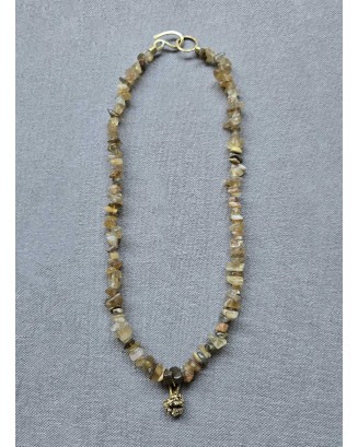 $ 75.000,00Collar elaborado con cuentas de vidrio, terminaciones y dije realizados en bronce