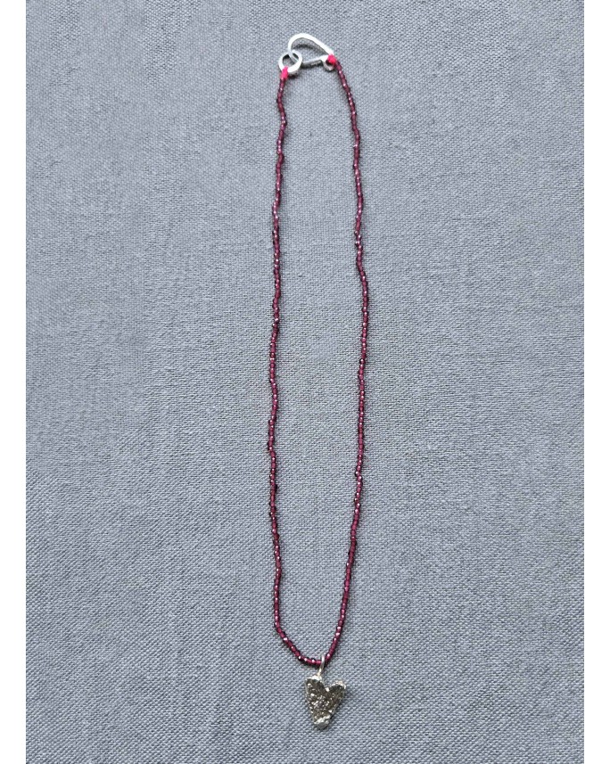 Collar elaborado con piedras de granate de 2mm con dije corazón y terminaciones elaborados en...