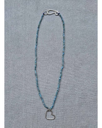 Collar de piedras naturales Apatita con terminaciones realizadas a mano en plata 925 y dije corazón de plata 925 (42cm de largo)