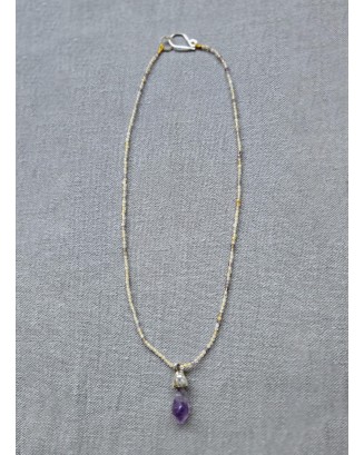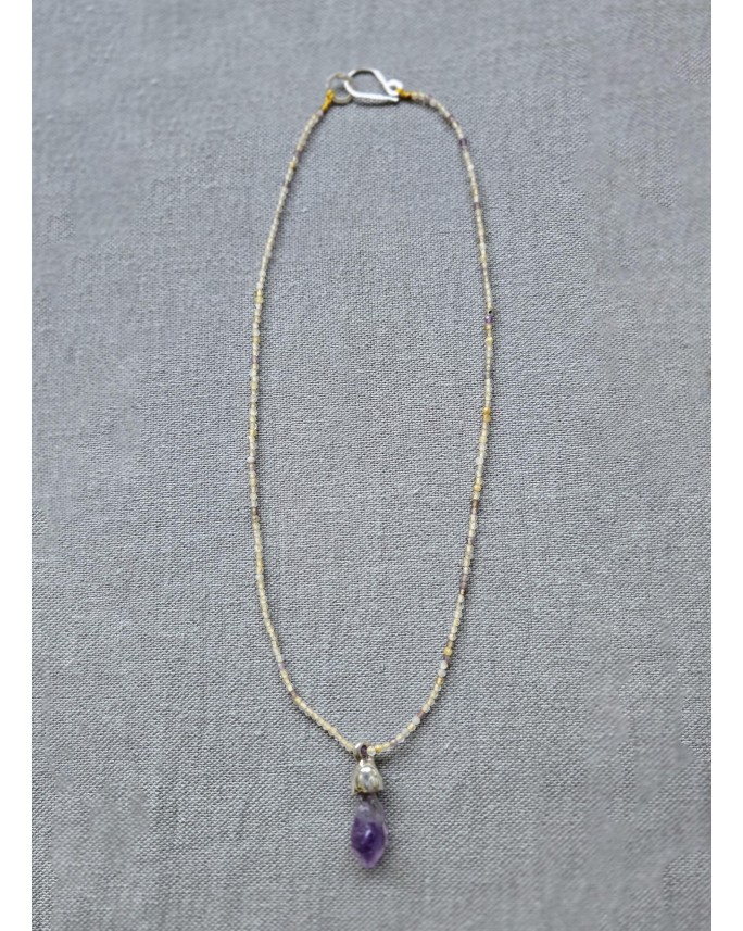 Collar piedras naturales Fluorita con dije de Amatista engarzada en cabushón de plata 925 y terminaciones de plata 925 (41 cm de largo)