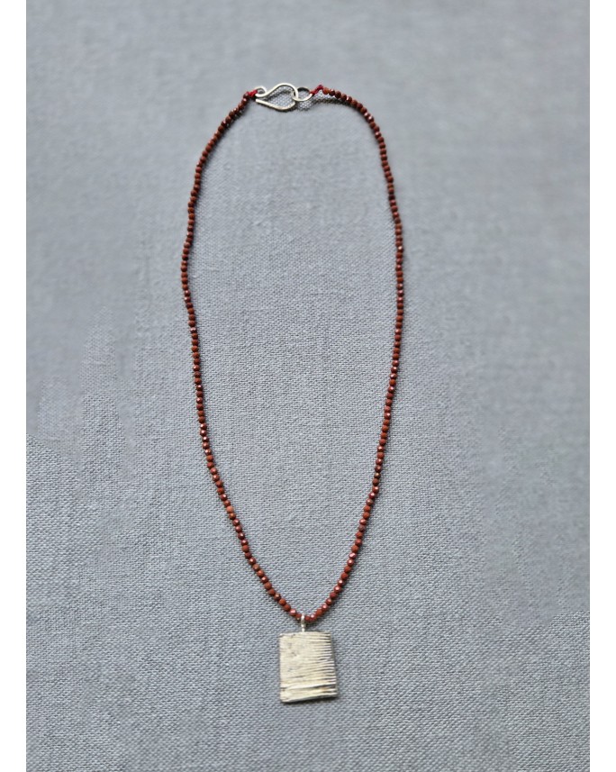 Collar de piedras naturales Jaspe rojo con dije y terminaciones elaboradas en plata 925 (40,5 cm)