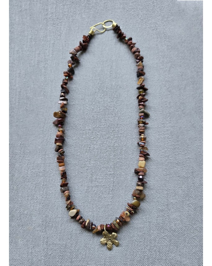 Collar elaborado con piedras, terminaciones  y dije de bronce (45cm de largo)